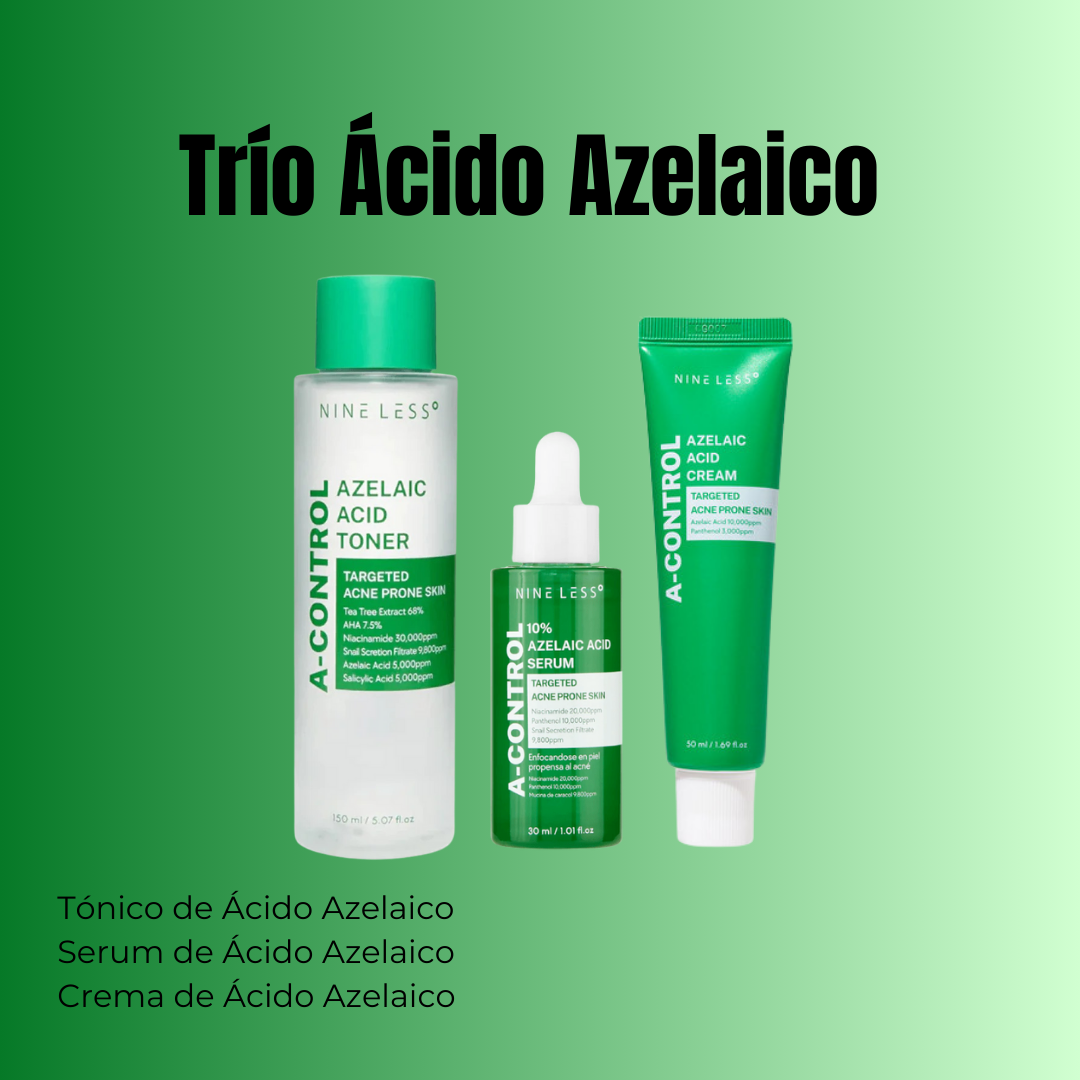 Trío a base de ácido azelaico para equilibrar, calmar y unificar la piel. Diseñado especialmente para pieles con tendencia acneica, rojeces o exceso de sebo.