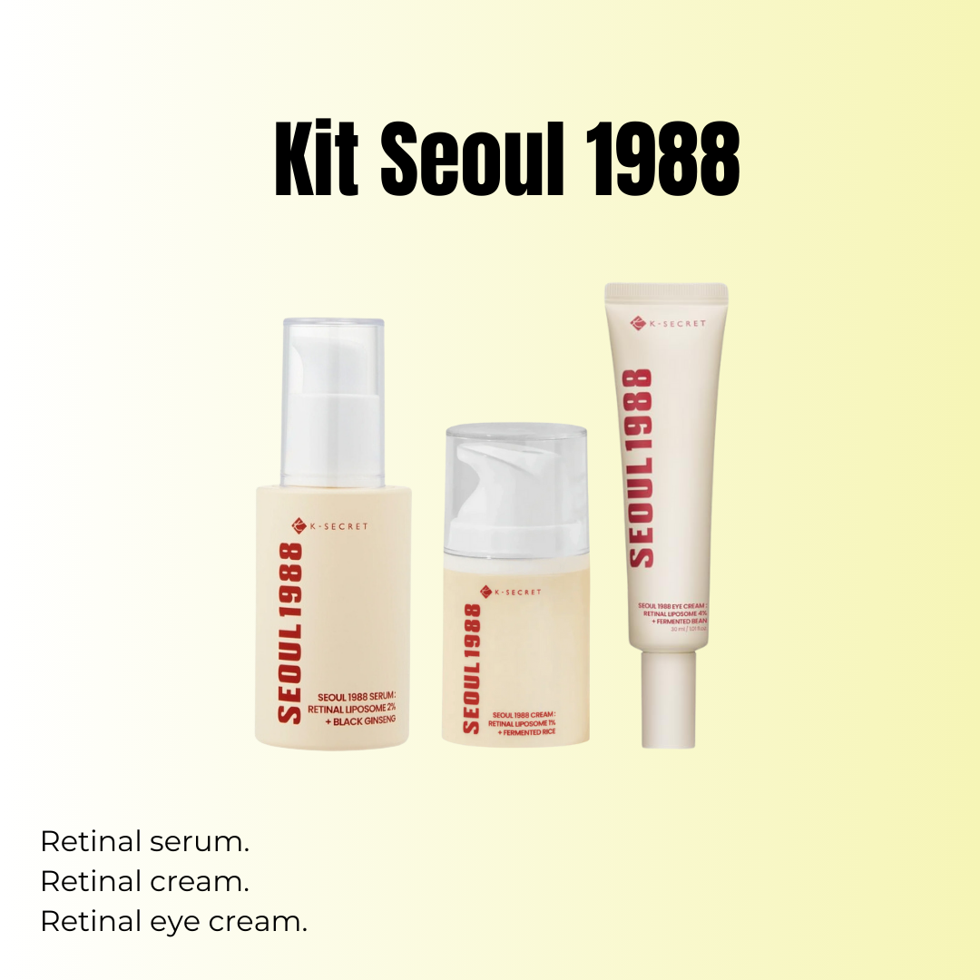 Kit de tratamiento nocturno anti edad, formulado con retinal y activos tradicionales coreanos. Diseñado para renovar la piel, estimular la producción de colágeno, mejorar la textura y suavizar arrugas, con mejor tolerancia que retinoides tradicionales.