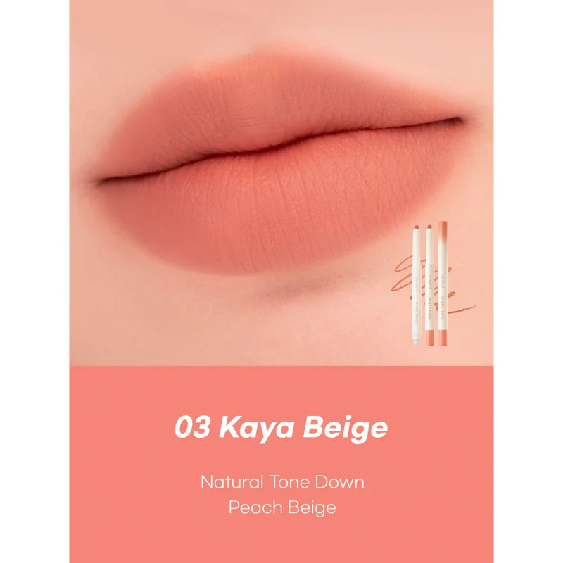 Tono disponible: #03 Kaya Beige. Un nude beige con subtono cálido que se adapta súper bien a tonos de piel latinos o medios. Es sutil pero con carácter: no te borra los labios, sino que los define y equilibra con un look pulido y natural. Ideal para combinar con maquillaje de ojos cargado, o para un look soft y monocromático.